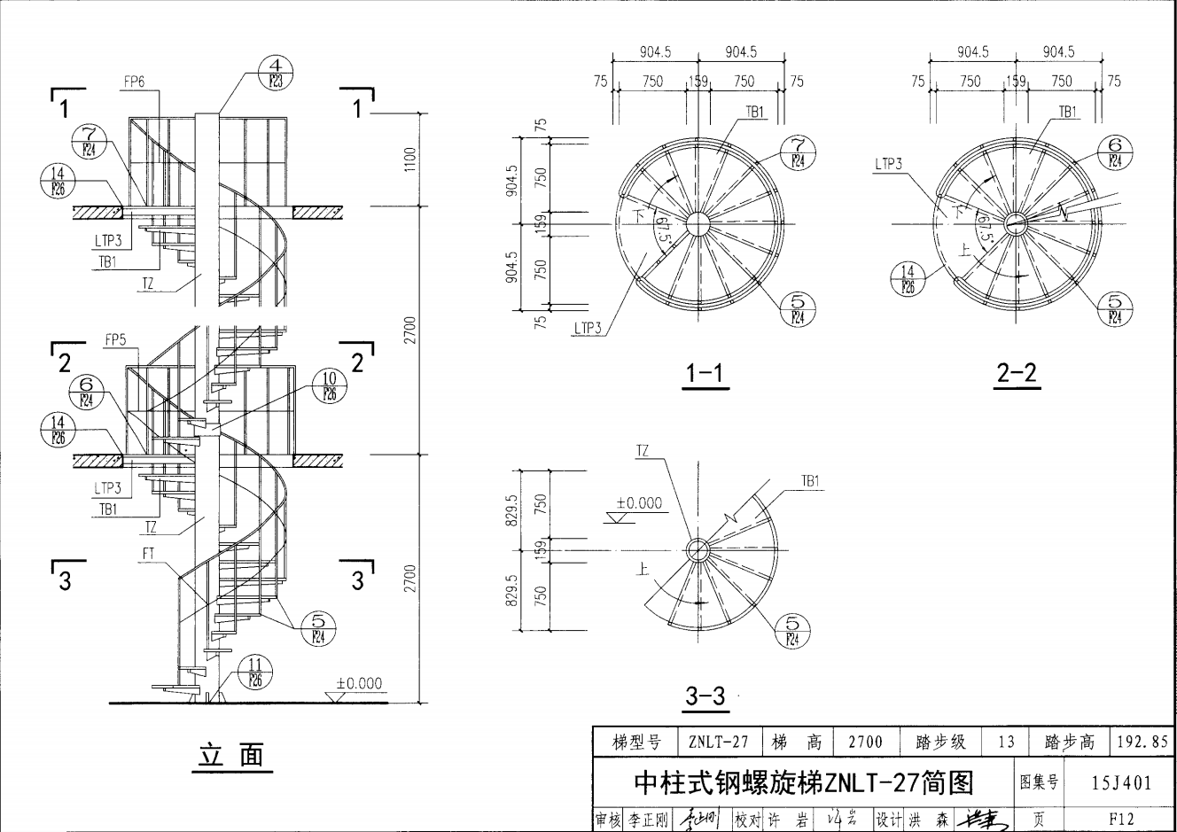 中柱式鋼螺旋梯ZNLT-27簡圖