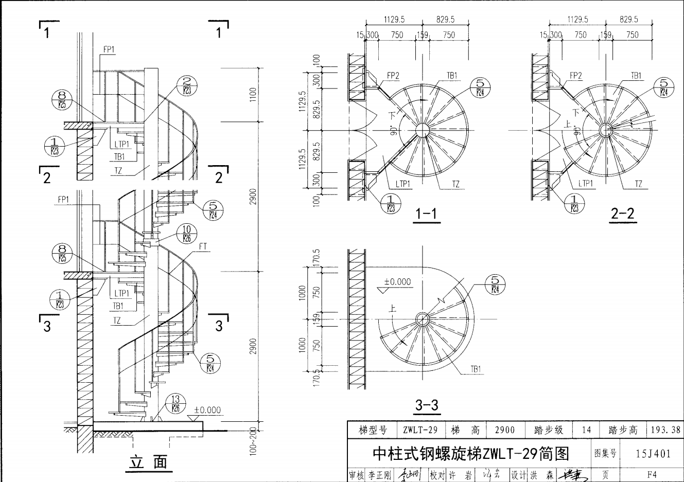 中柱式鋼螺旋梯ZWLT-29簡圖