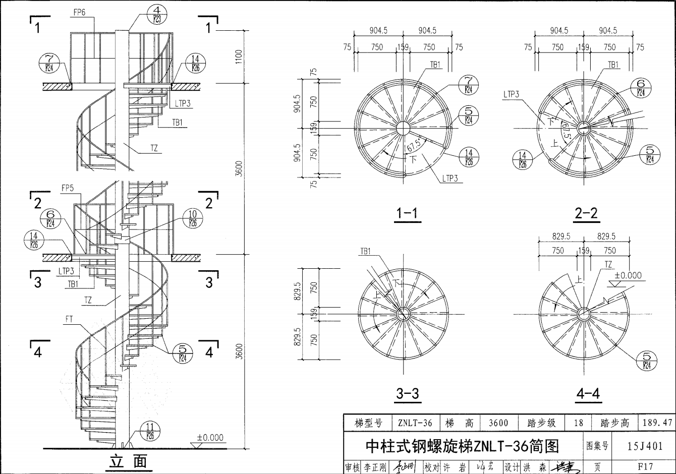 中柱式鋼螺旋梯ZNLT-42簡圖