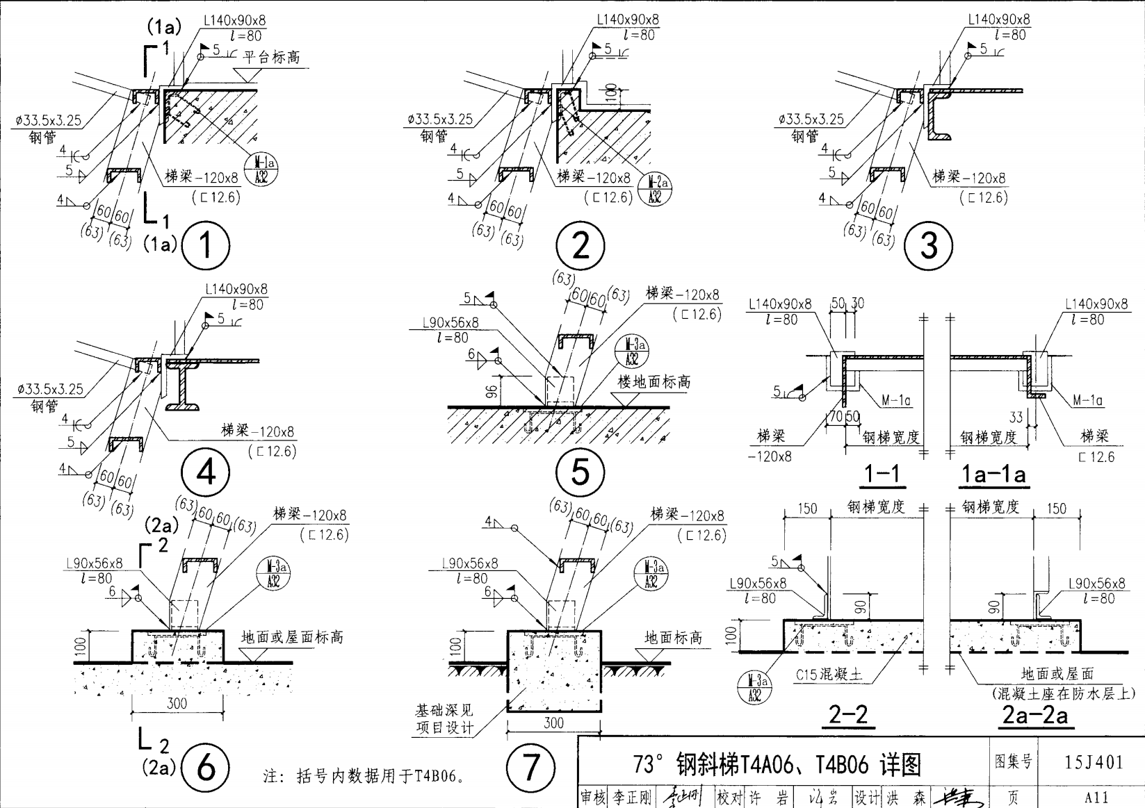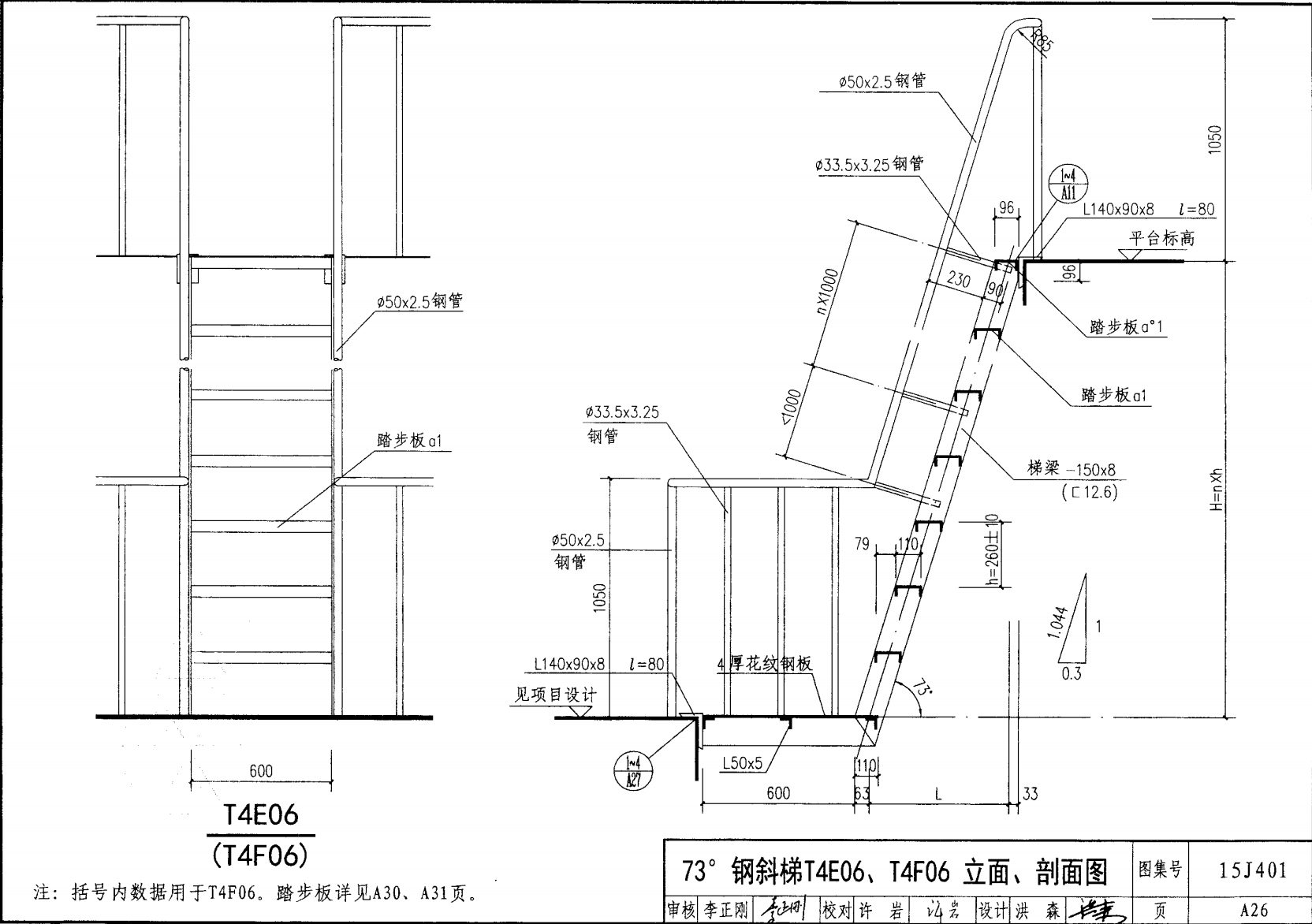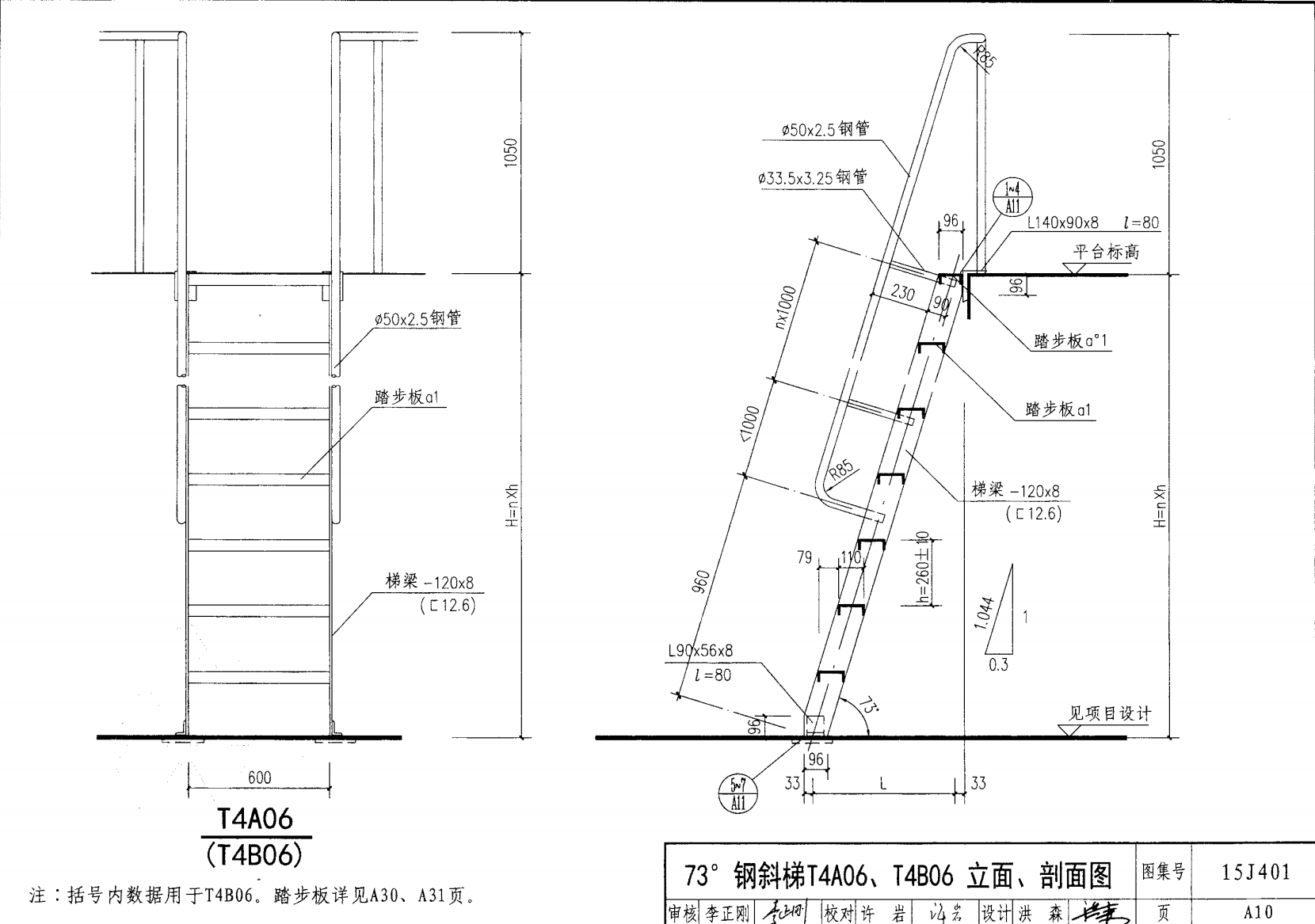 | 鋼斜梯A | 73°(1:0.3) | T4A06 | 600 | -120X8 | 4.80 | a~c |