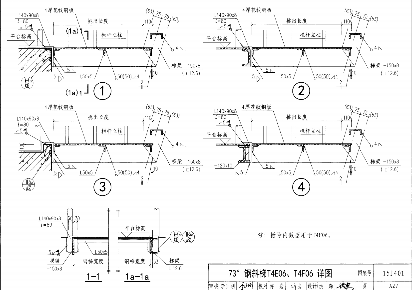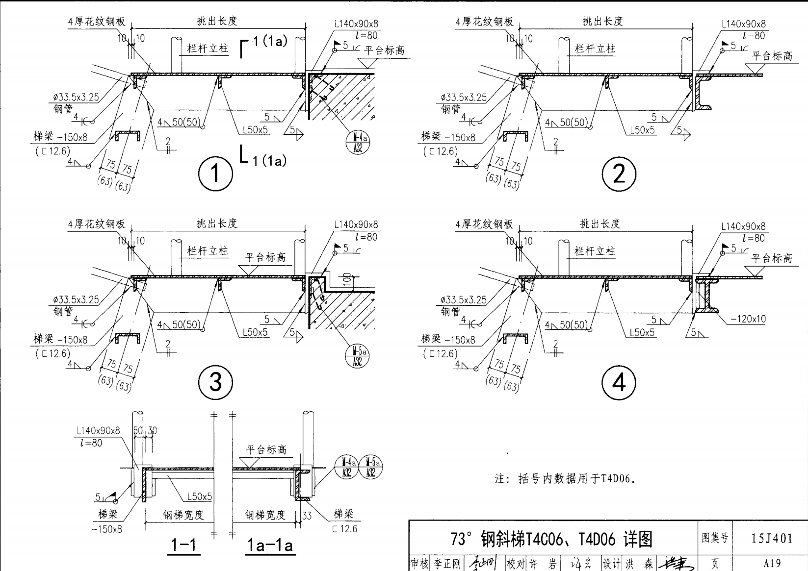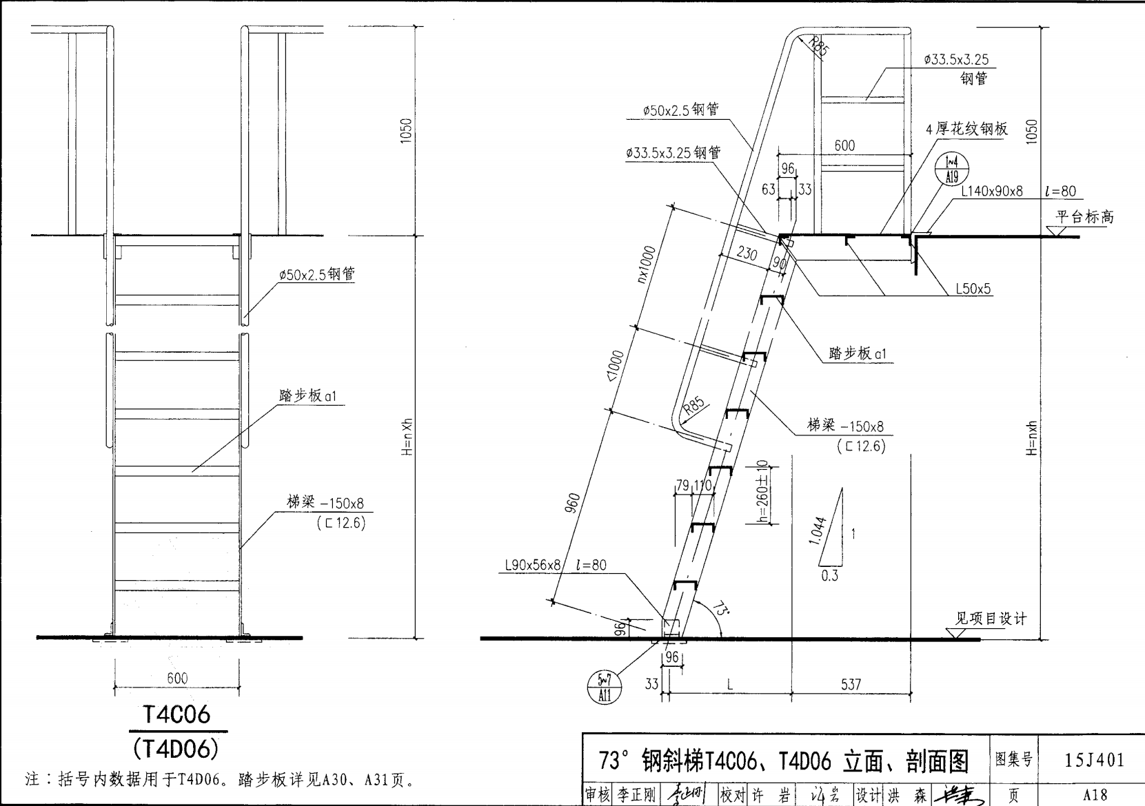 | 鋼斜梯A | 73°(1:0.3) | T4A06 | 600 | -120X8 | 4.80 | a~c |