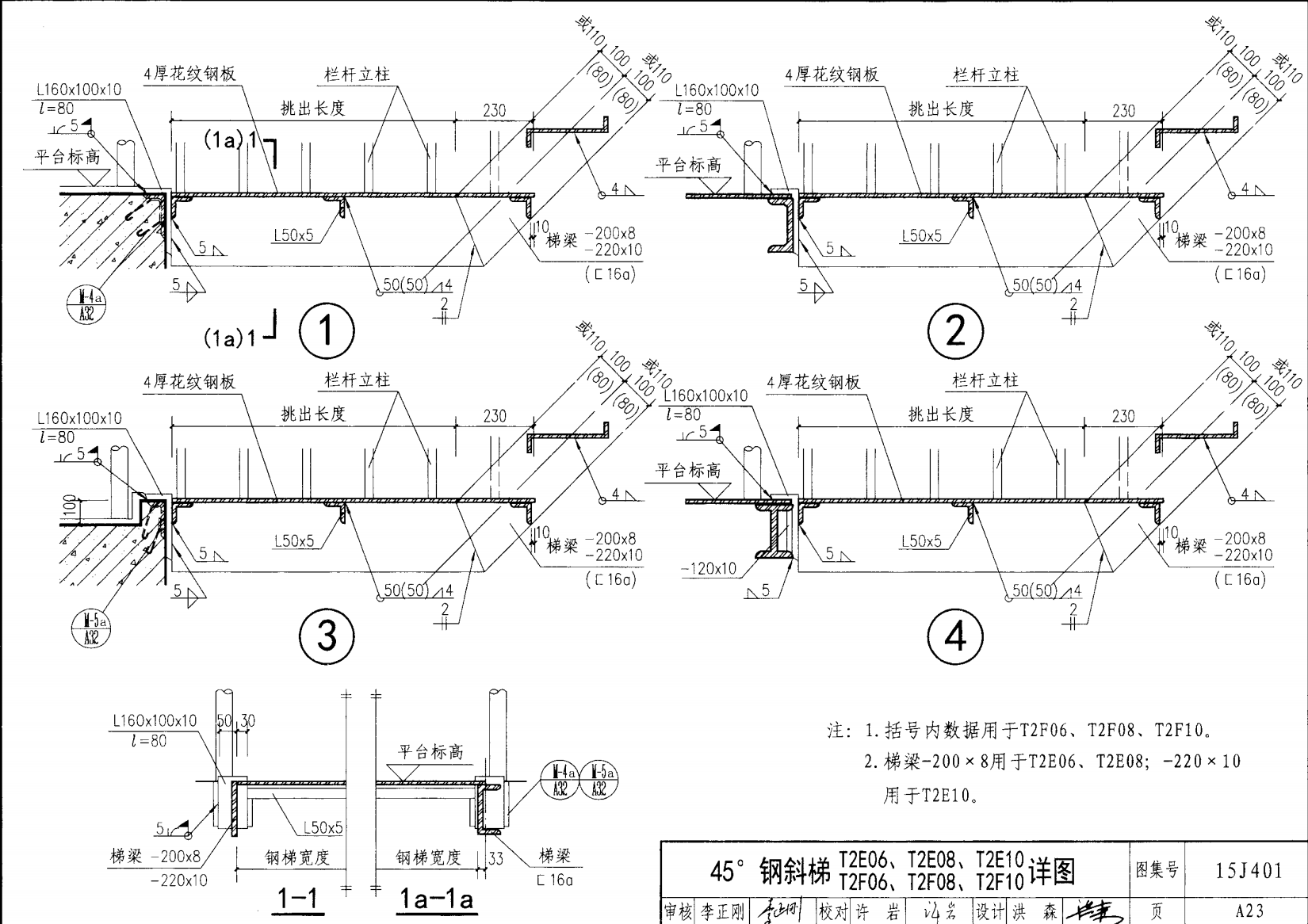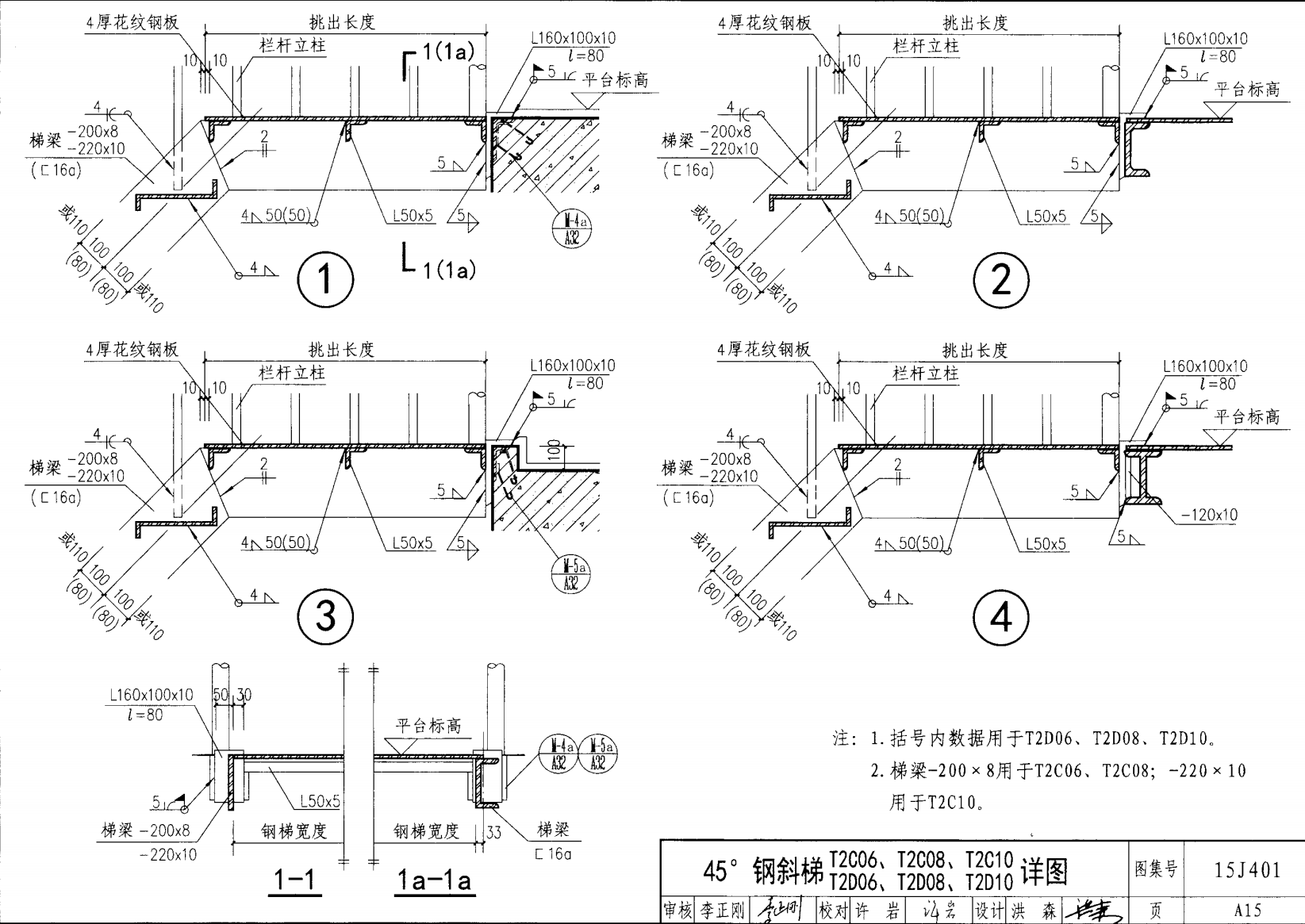 | 鋼斜梯A | 45°(1:1) | T2A10 | 1000 | -180X10 | 4.50 | a~c |