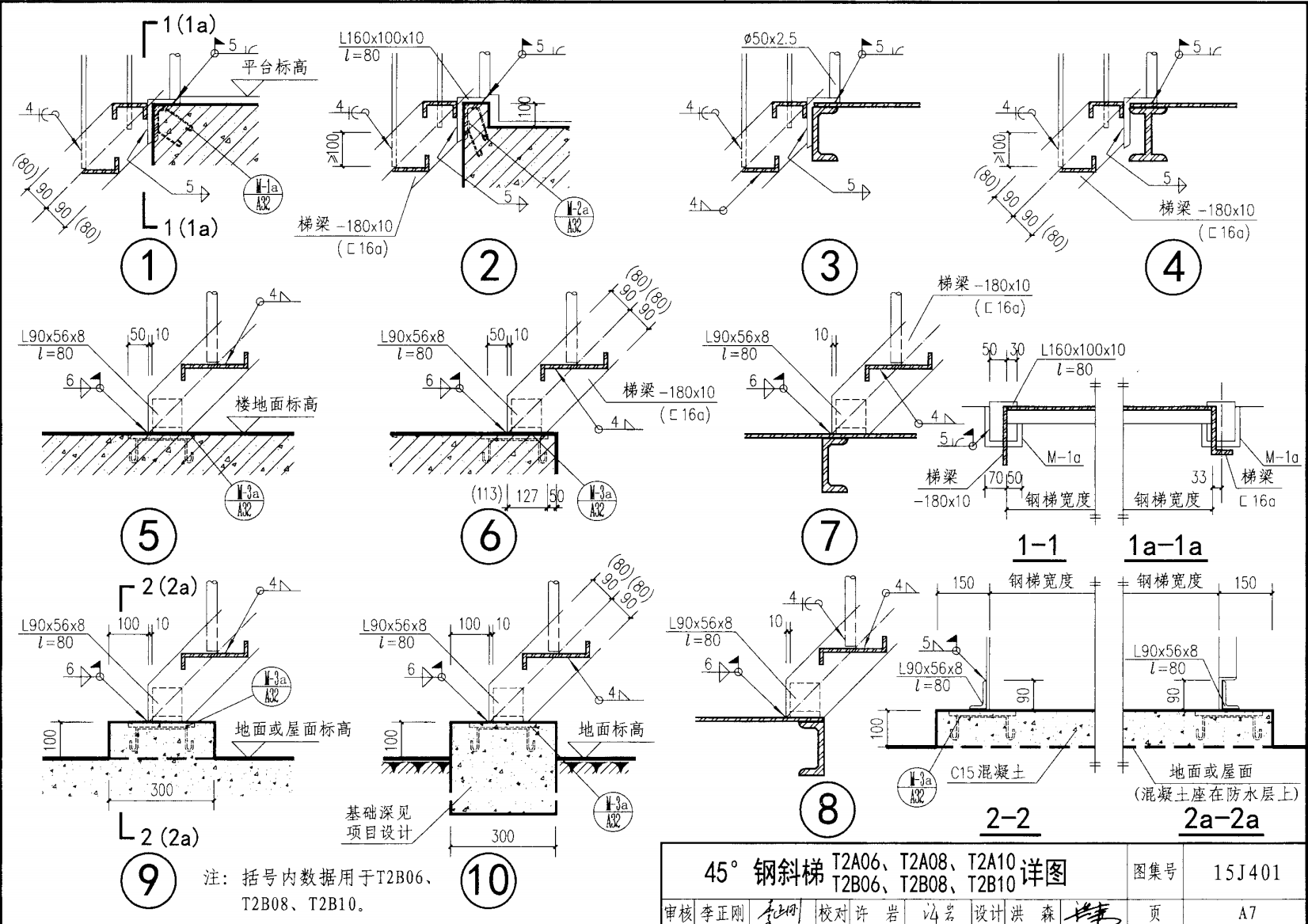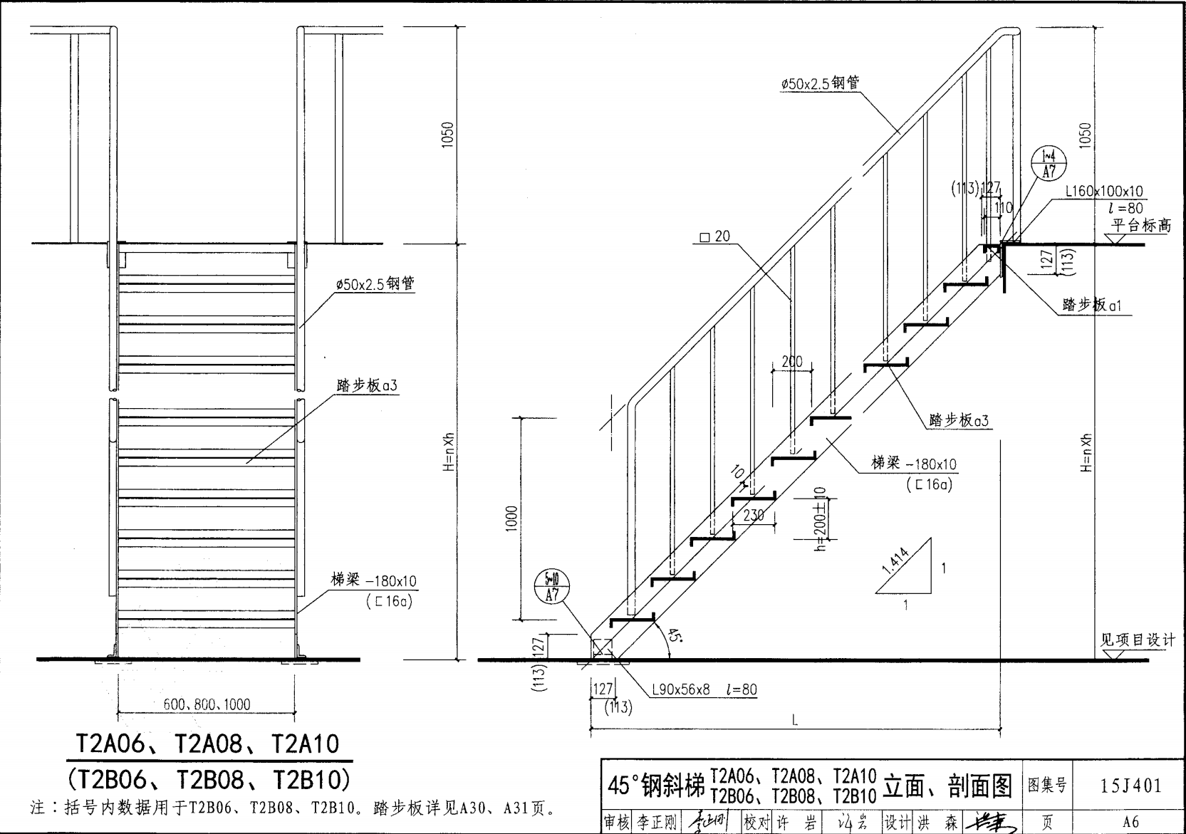 | 鋼斜梯A | 45°(1:1) | T2A06 | 600 | -180X10 | 4.50 | a~c |
