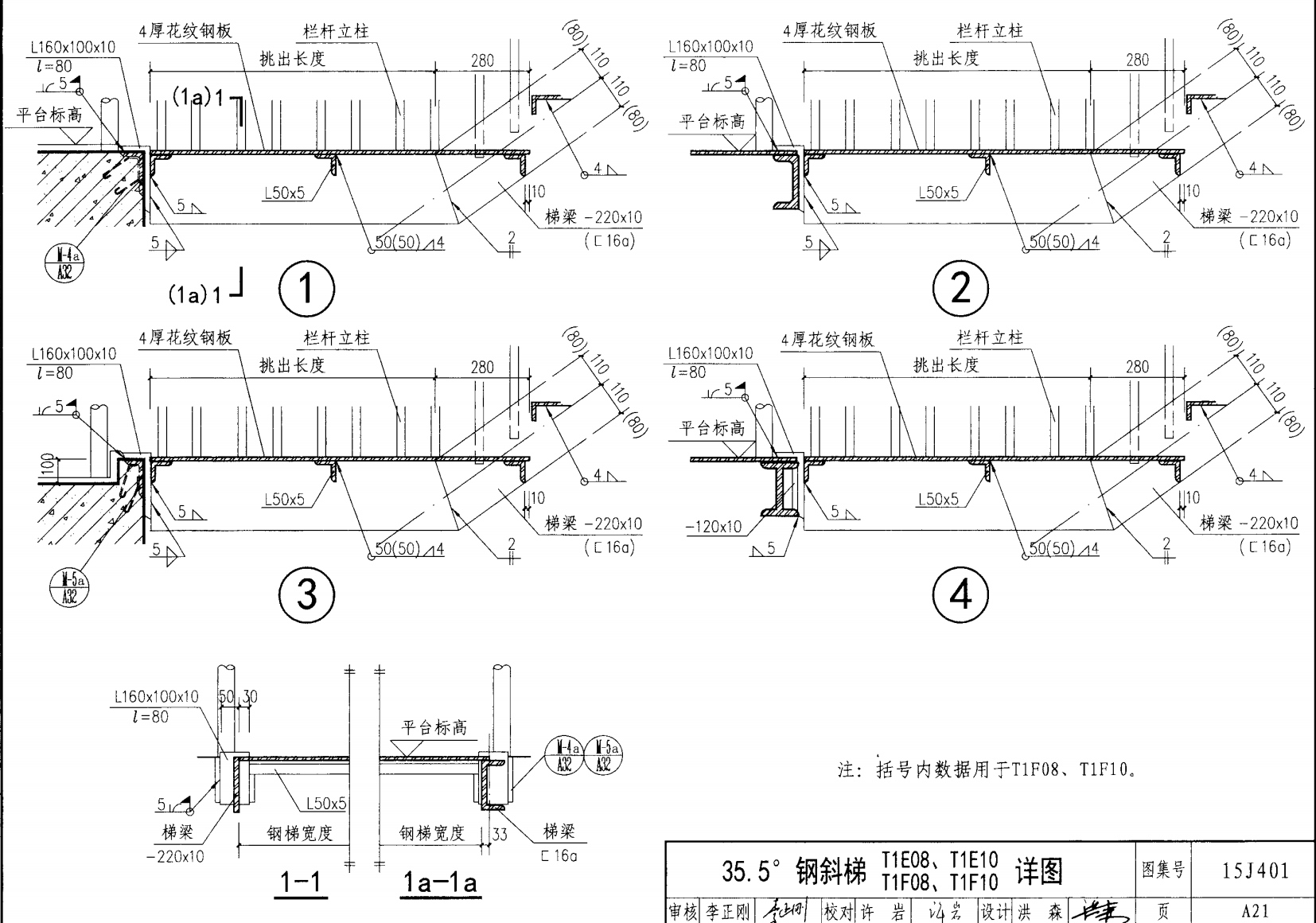 | 鋼斜梯E | 35.5°(1:1.4) | T1E10 | 1000 | -220X10 | 3.30 | a~c |