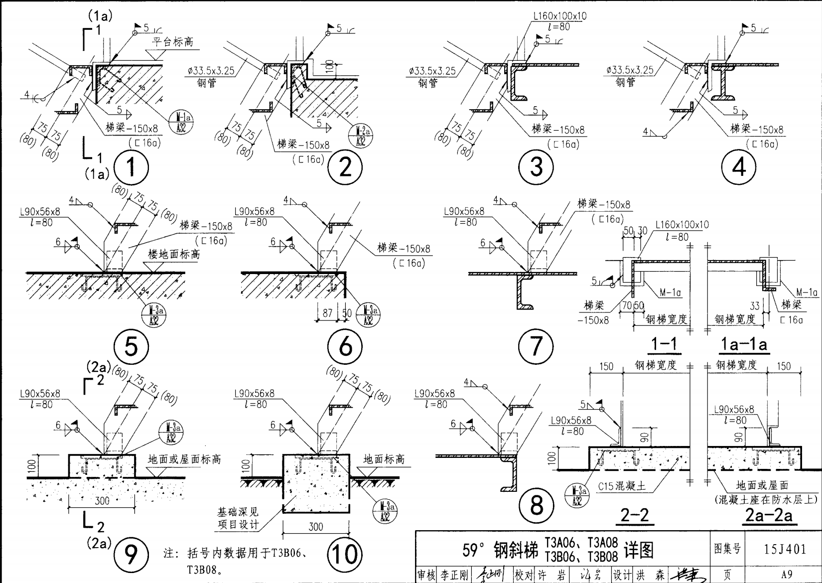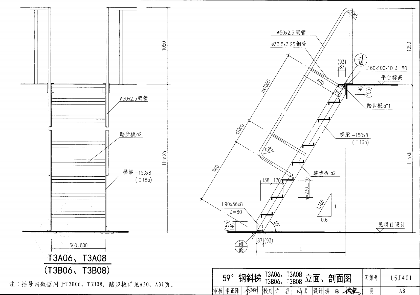 | 鋼斜梯A | 59°(1:0.6) | T3A08 | 800 | -150X8 | 5.10 | a~c |