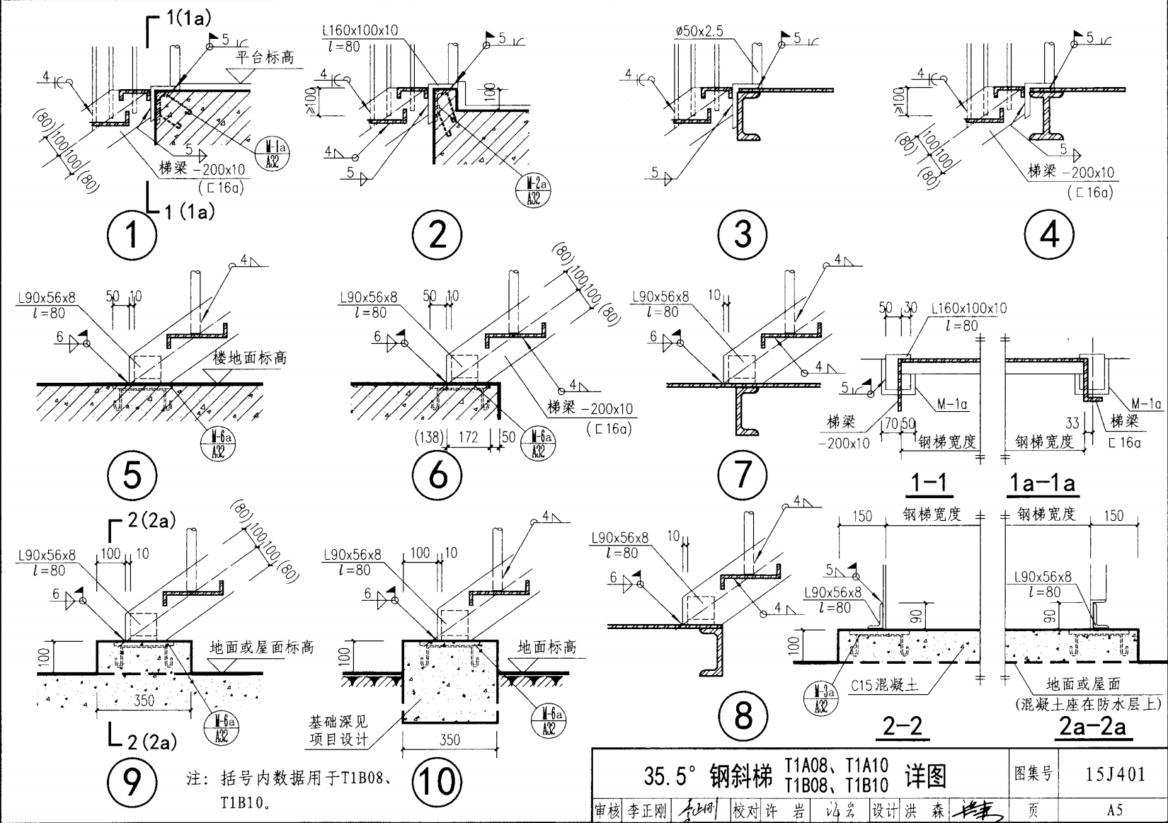 | 鋼斜梯A | 35.5°(1:1.4) | T1A10 | 1000 | -200X10 | 3.60 | a~c |