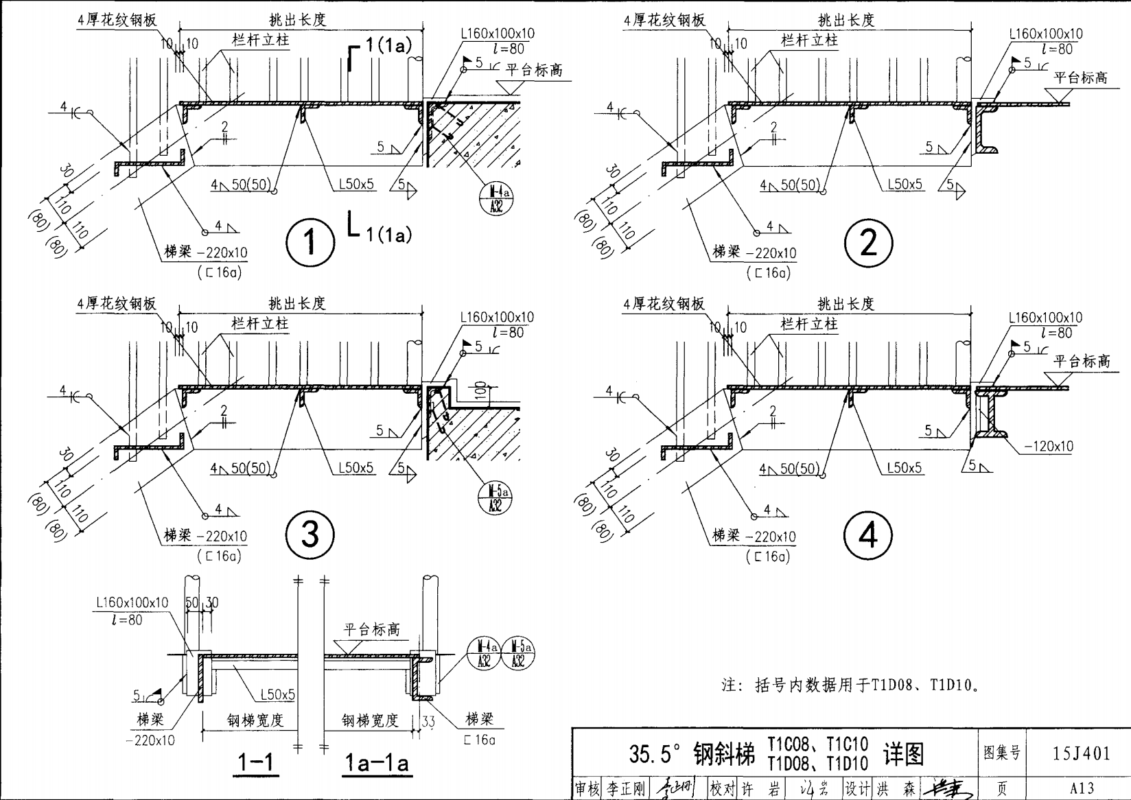 | 鋼斜梯D | 35.5°(1:1.4) | T1D10 | 1000 | 〔16a | 3.30 | a~c |
