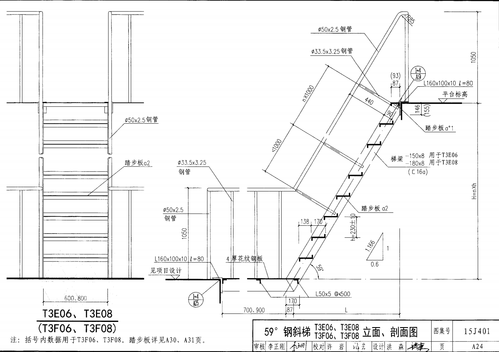 | 鋼斜梯E | 59°(1:0.6) | T3E06 | 600 | -150X8 | 5.10 | a~c |