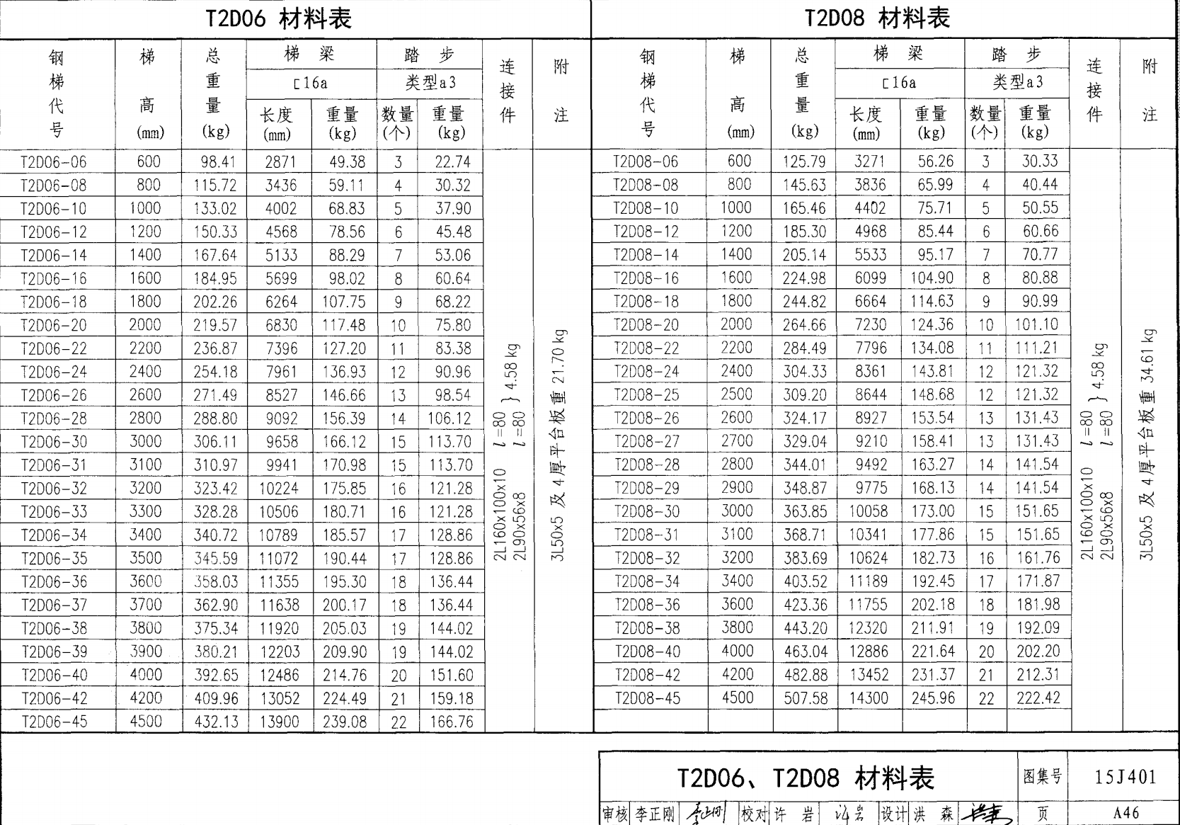 | 鋼斜梯D | 45°(1:1) | T2D06 | 600 | 〔16a | 4.50 | a~c |