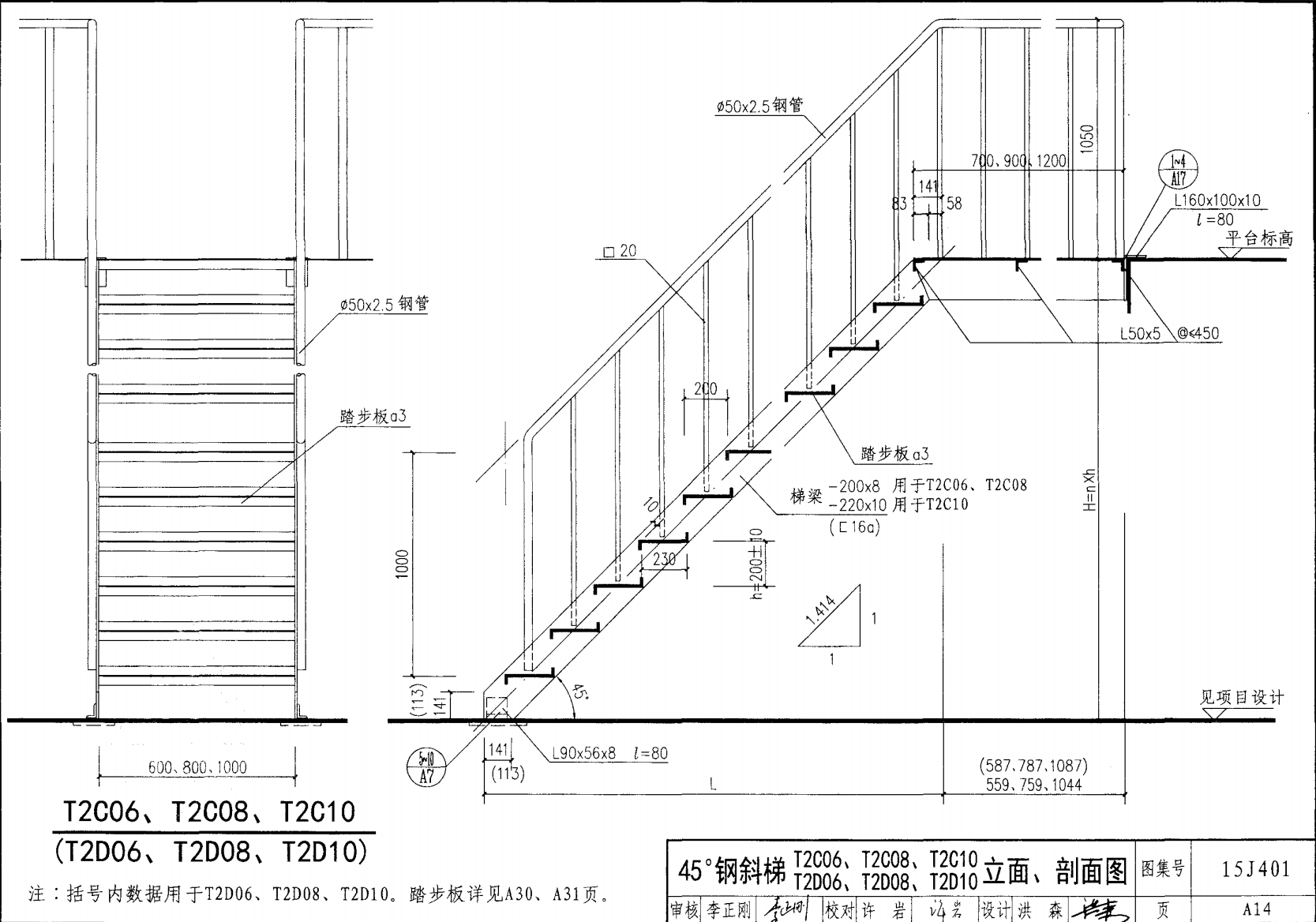鋼斜梯A | 45°(1:1) | T2A08 | 800 | -180X10 | 4.50 | a~c |