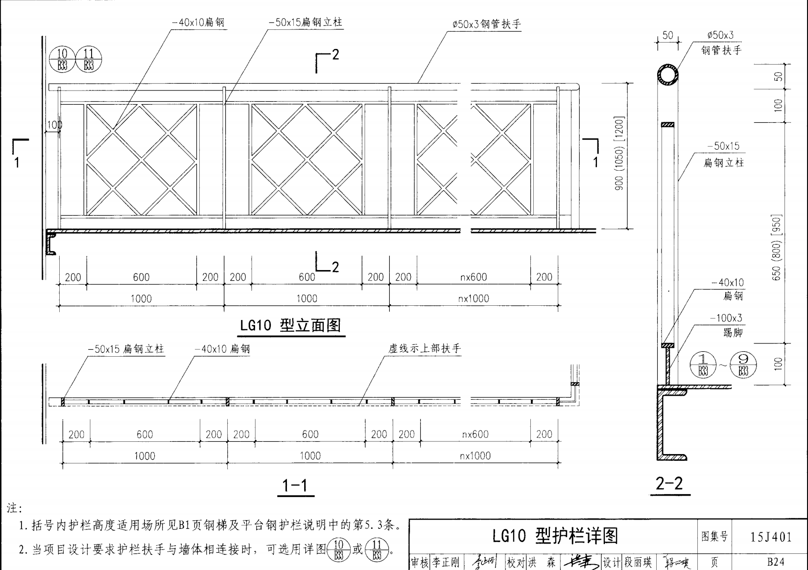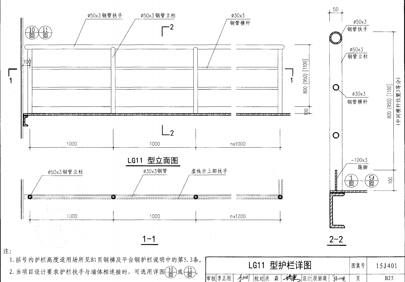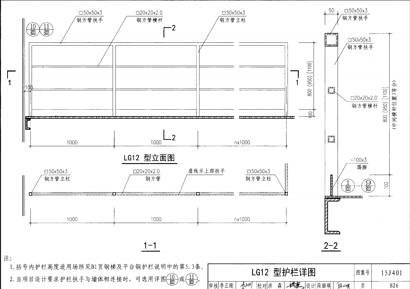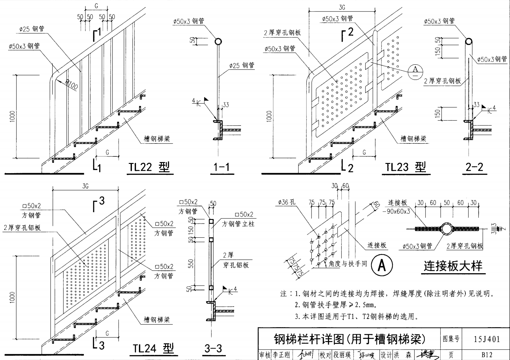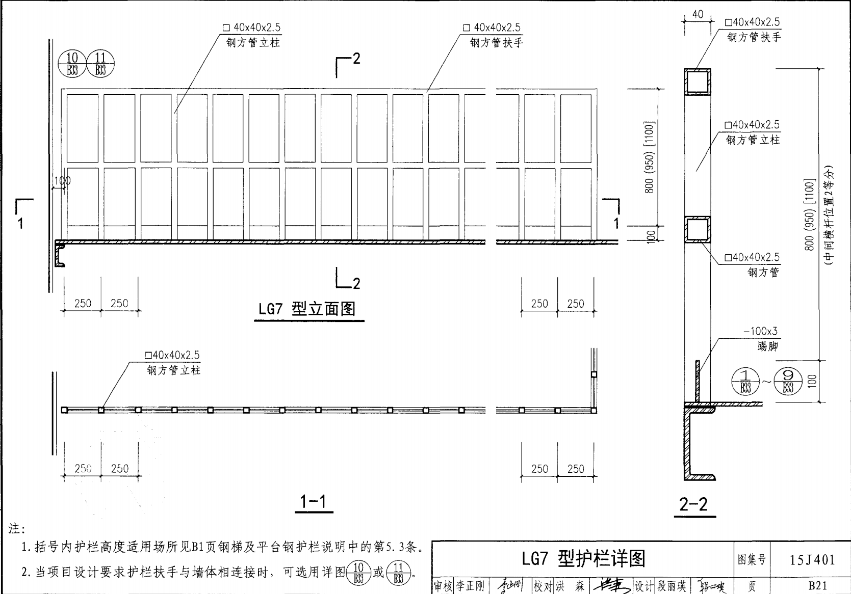 欄桿采用鋼材力學性能不低于 格證的鋼材Q235-B ,并具有碳含量合 所有欄桿均可用不銹鋼制作 欄桿的焊接要求應符合《鋼結構工程施工質量驗收規(guī)范》 GB50205-2001 證結構設計強度的規(guī)定。當焊接不便時可用螺栓連接,但應保 鋼質欄桿的涂裝要求可以熱鍍鋅和噴漆,噴塑 施工中如果用其他型鋼取代圖集中的立柱或減少立柱截 面尺寸,都應按荷載規(guī)范認真核算,以確保安全