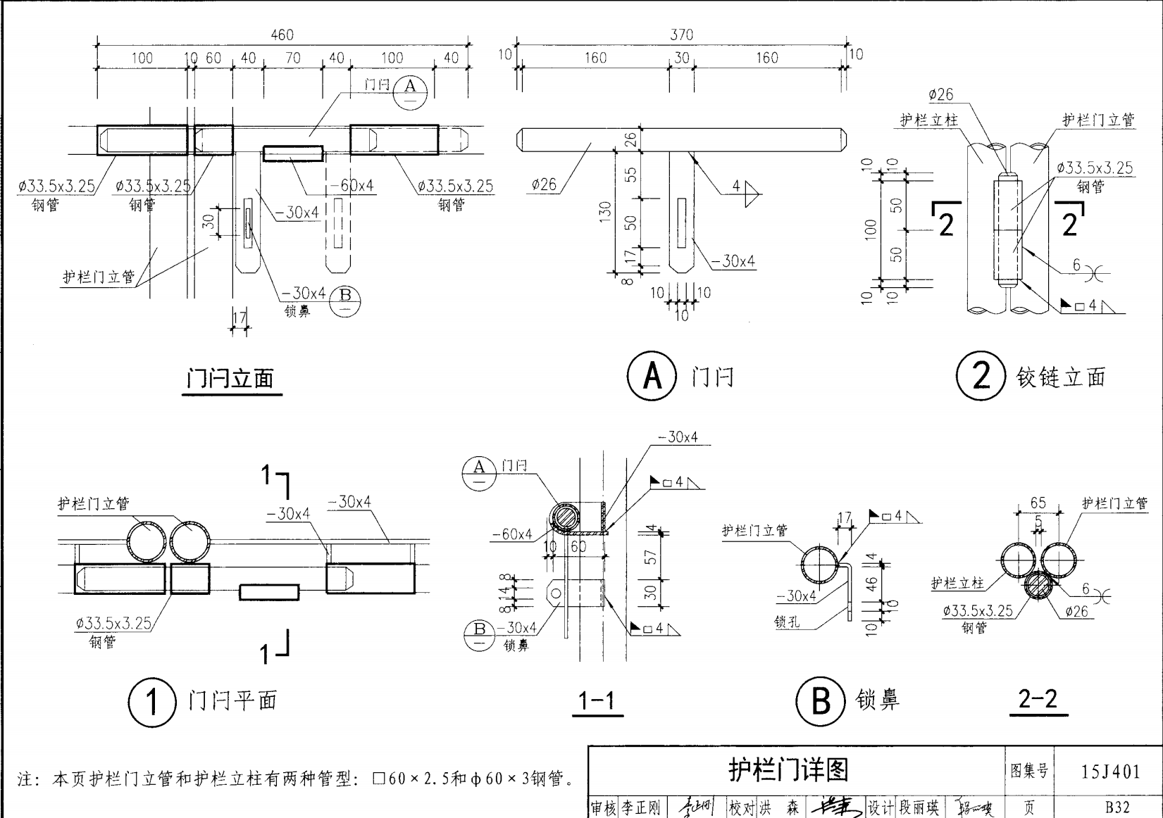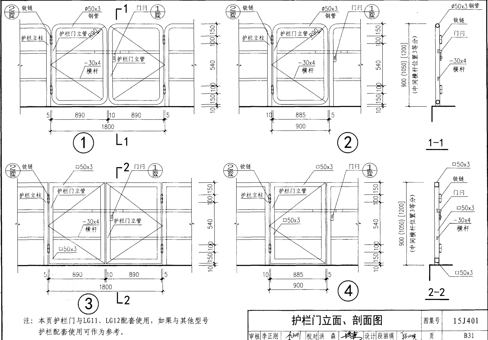 護欄門立面、剖面圖