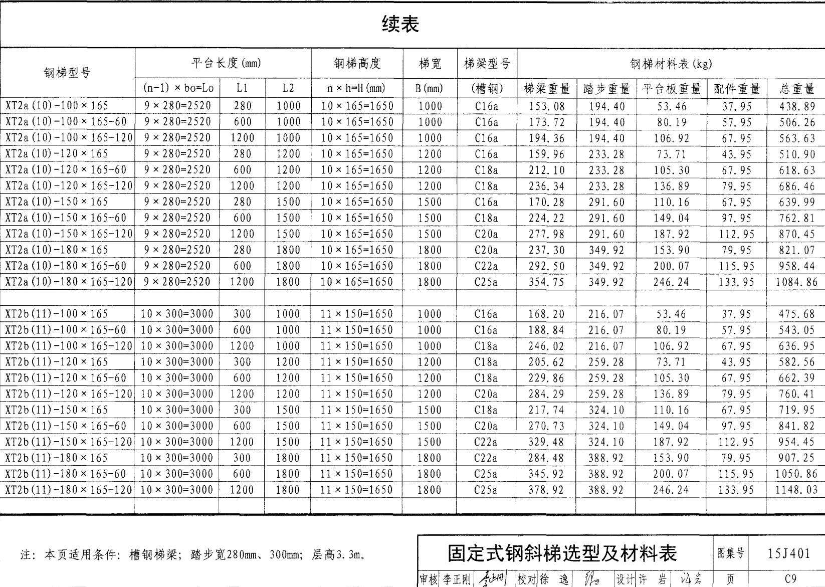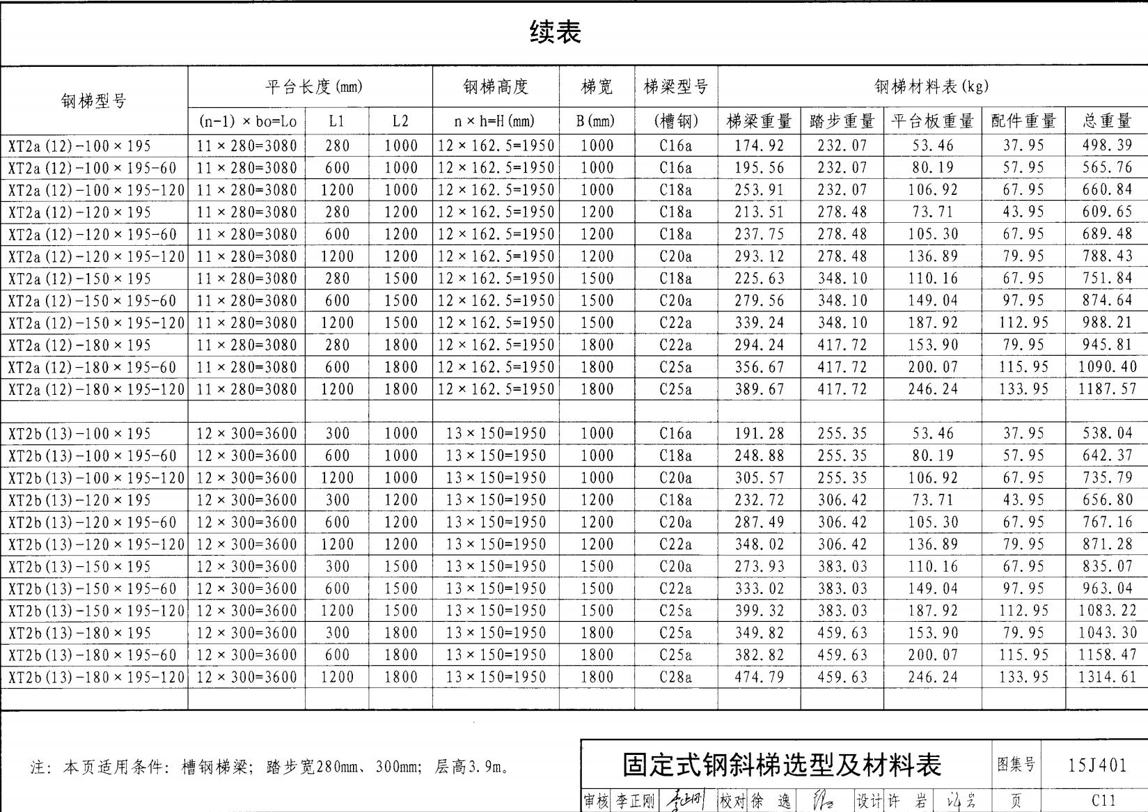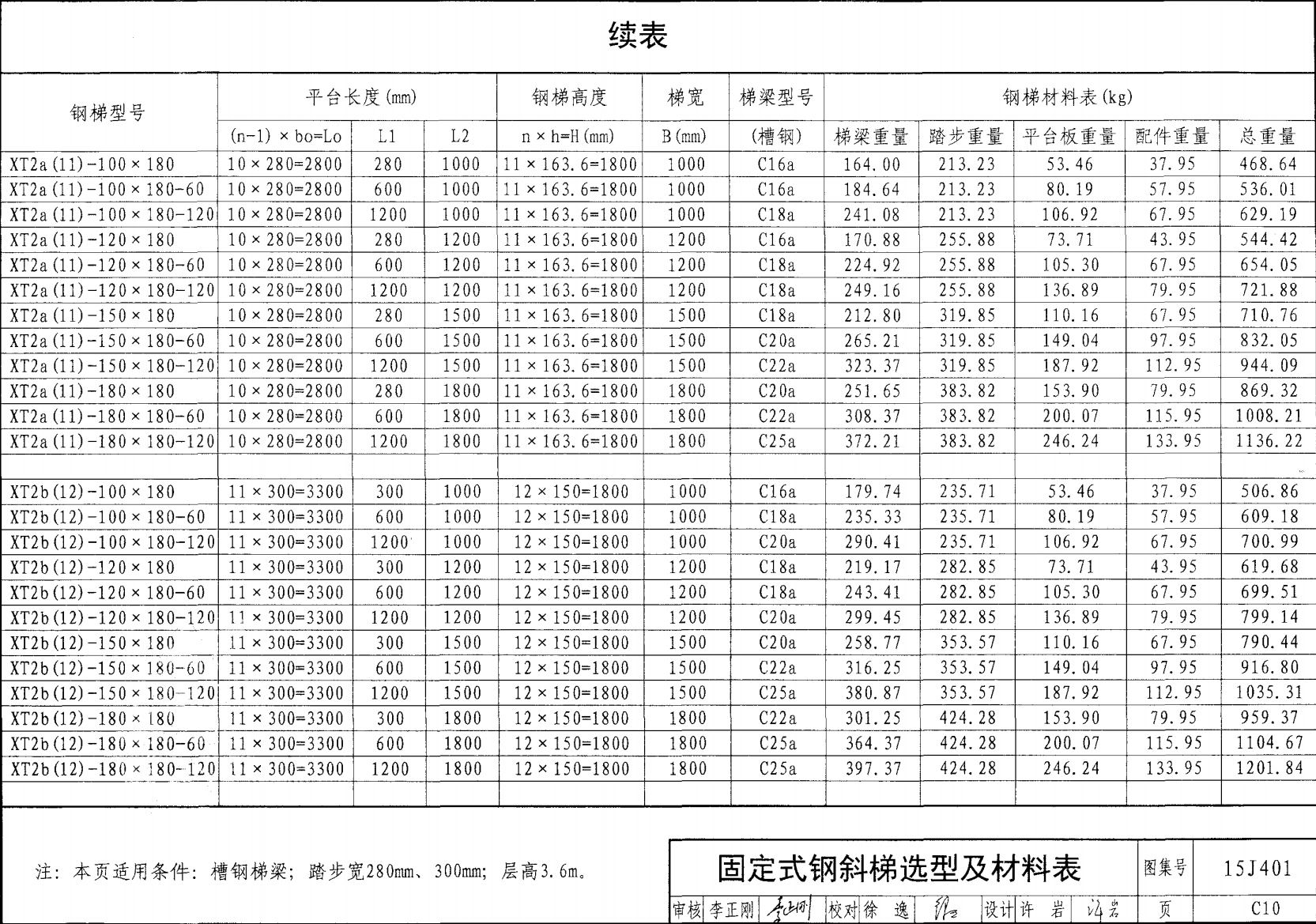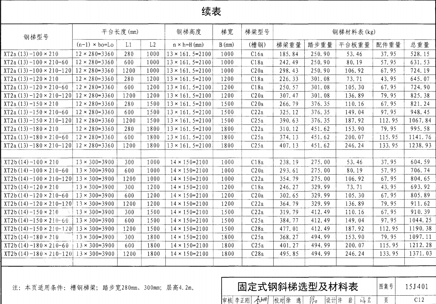 • 按鋼梯選用表選用梯梁時,如樓梯寬度 或跨度與表中不一致時,可參照表中高一檔值選用